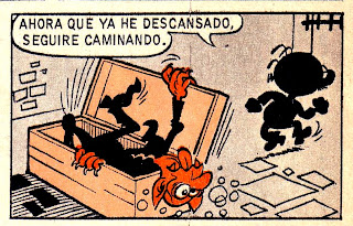 Casualmente o no, en el mismo tebeo, en páginas interiores, encontramos la historieta de Mortadelo y Filemón en la cual, Ibáñez ha hecho que su criatura más célebre se disfrace de diversos mitos del terror con la intención de asustar a un cliente no deseado. Tal circunstancia nos brinda la oportunidad de contemplar la versión que Mortadelo realiza de “La Momia” y “El Vampiro”. Sin duda Ibáñez tenía una semana terrorífica de trabajo, como siempre.
